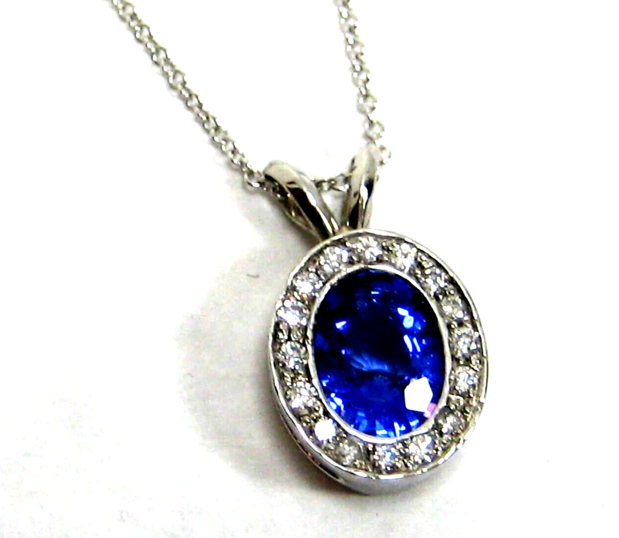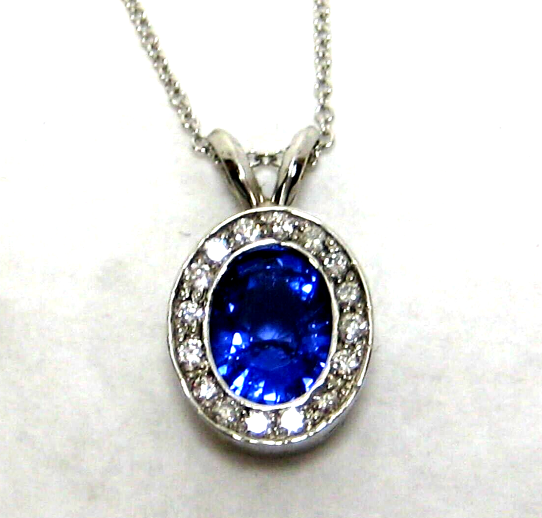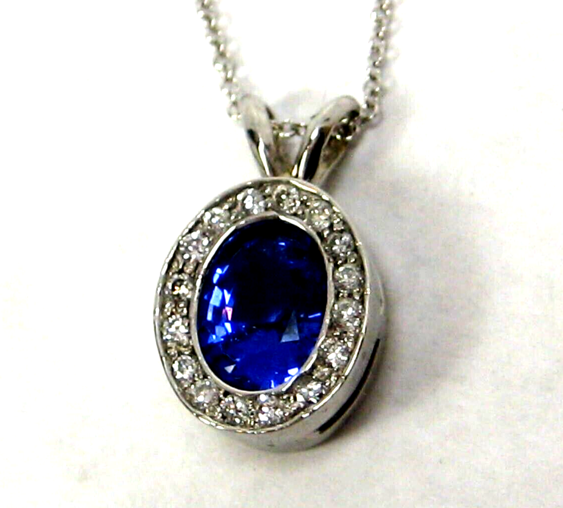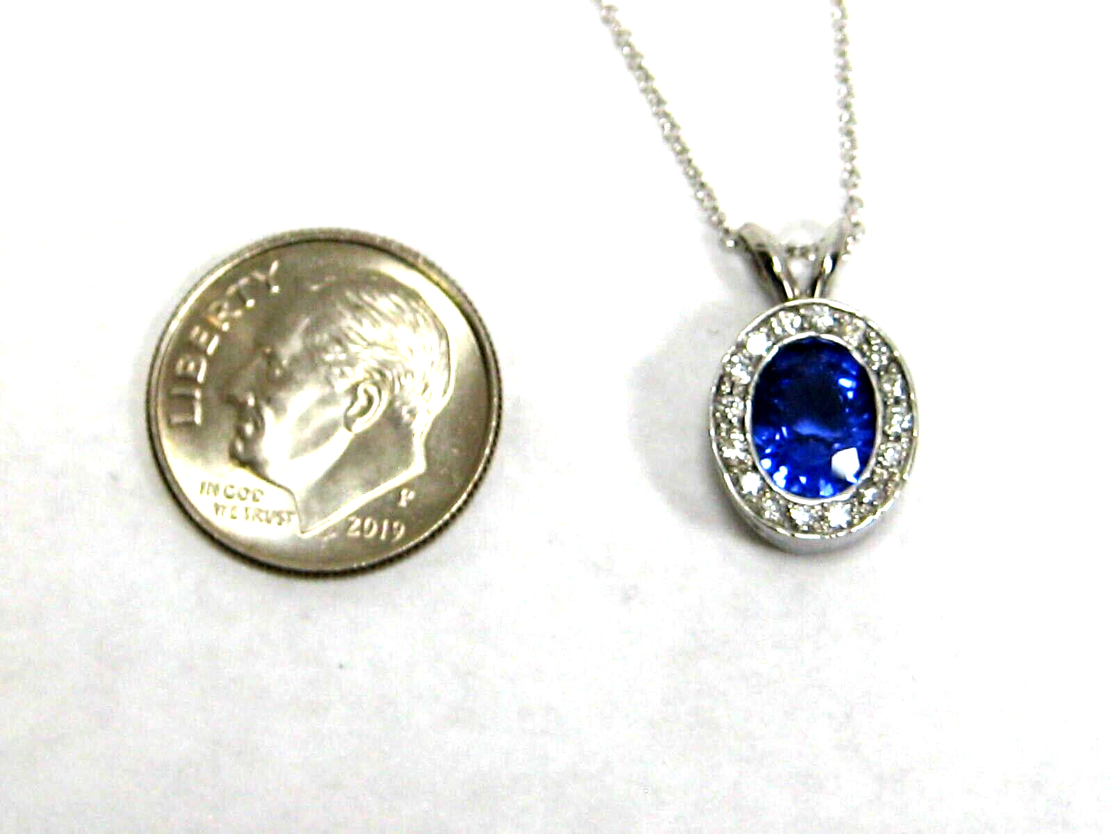 Rare Tanzanite 14K Pendant Solid White Gold Chain MADE In USA