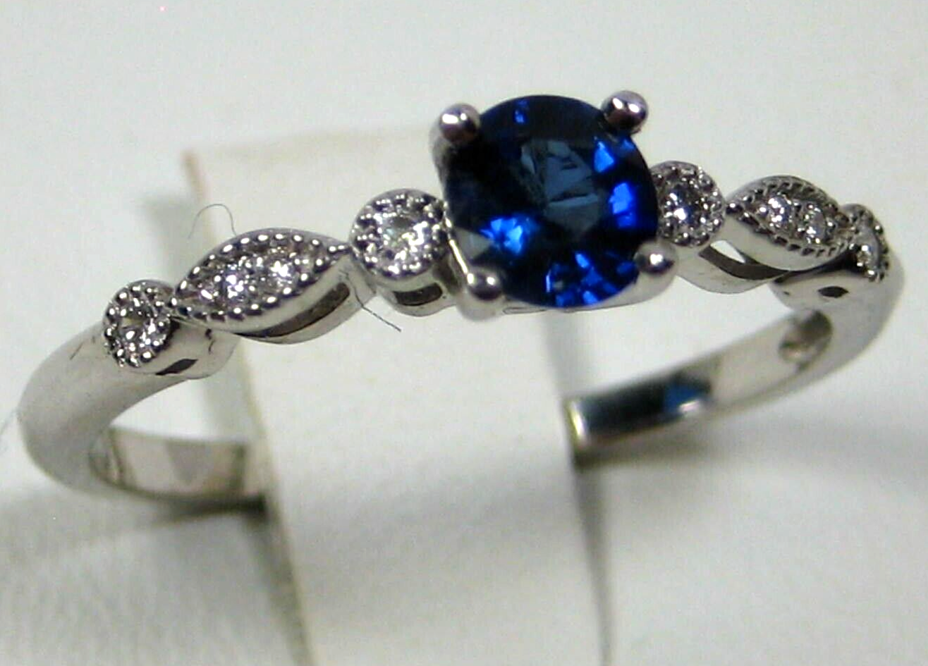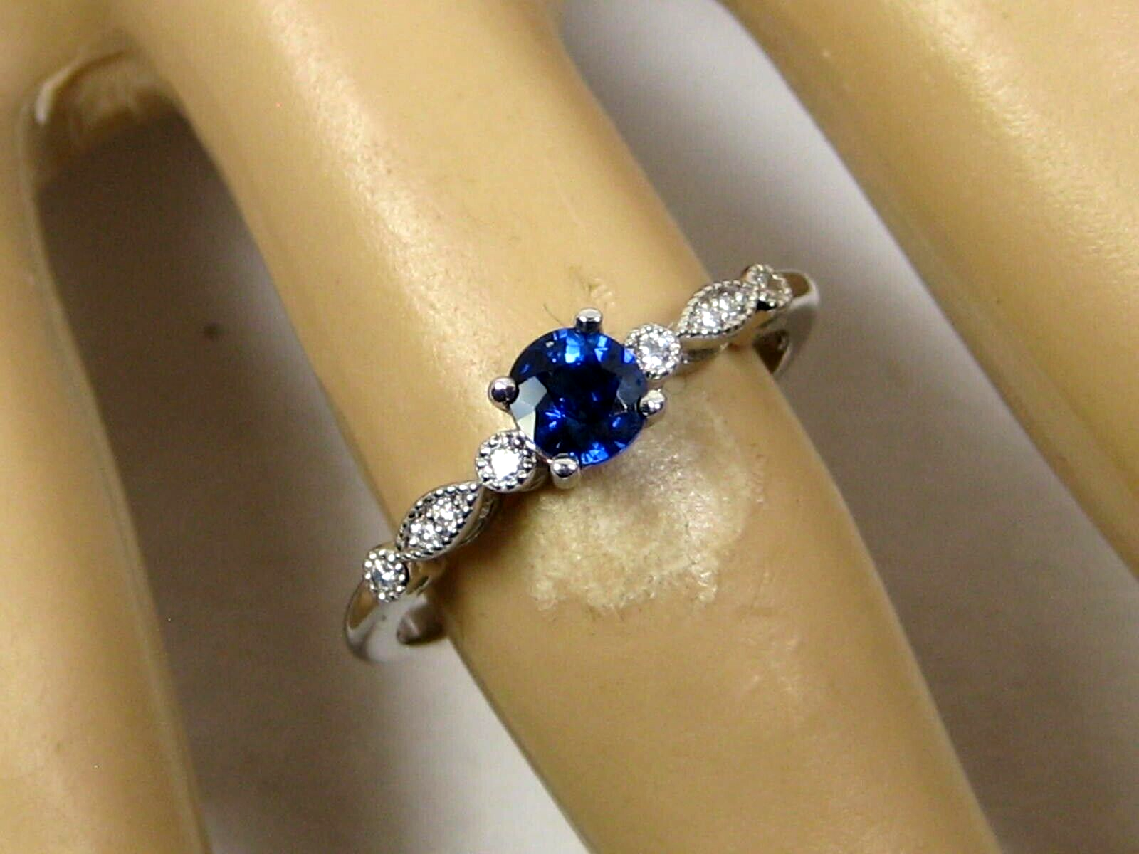 Vivid Blue Sapphire Ring 14K white gold Natural Made In USA
