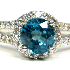 Blue Zircon Ring 14K white gold Natural Heirloom Made In the USA